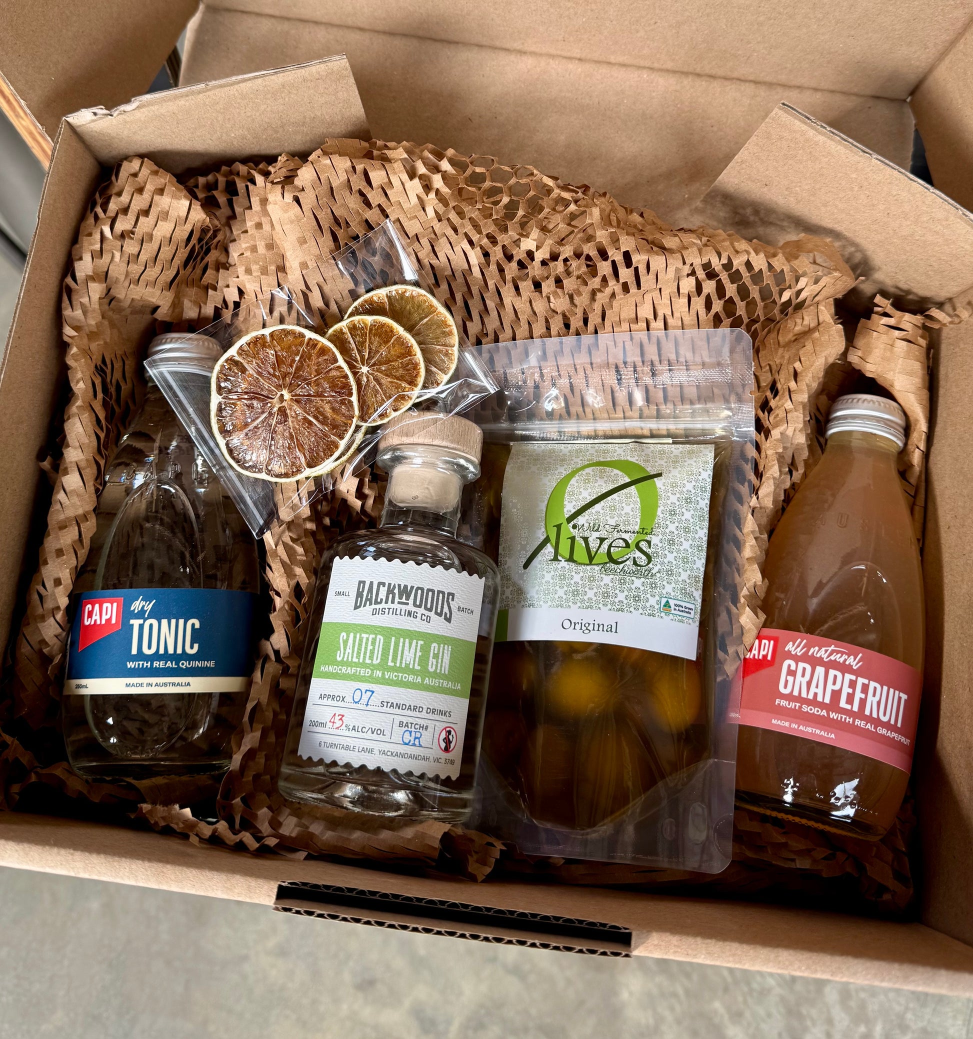 Our award-winning Salted Lime Gin is the star of this gift set, paired with local mixers and snacks that bring out its refreshing, citrusy edge. Whether you’re gifting or indulging, this box is designed for easy, delicious serves that feel just a little bit fancy.